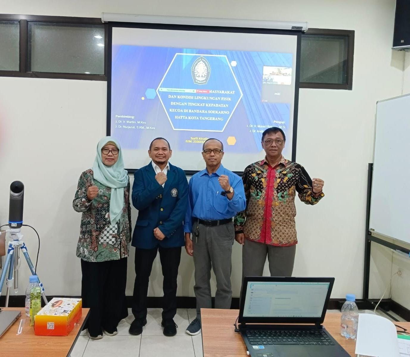 Semarang (29/12/2023), Program Studi Magister Kesehatan Lingkungan Fakultas Kesehatan Masyarakat Universitas Diponegoro (MKL FKM UNDIP) telah melaksanakan kegiatan Ujian Tesis atas nama Eko Handoyo . Kegiatan ini dilaksanakan secara hybrid di Ruang Kelas D.213 Gedung D Lantai 2 FKM UNDIP. Dalam pelaksanaan ini , selaku ketua penguji adalah Dr. Ir. Martini, M. Kes Anggota Penguji Dr. Nurjazuli, SKM, M. Kes, Dr. Ir. Martini, M. Kes, dan Dr. Andiyatu, SKM, M. Si